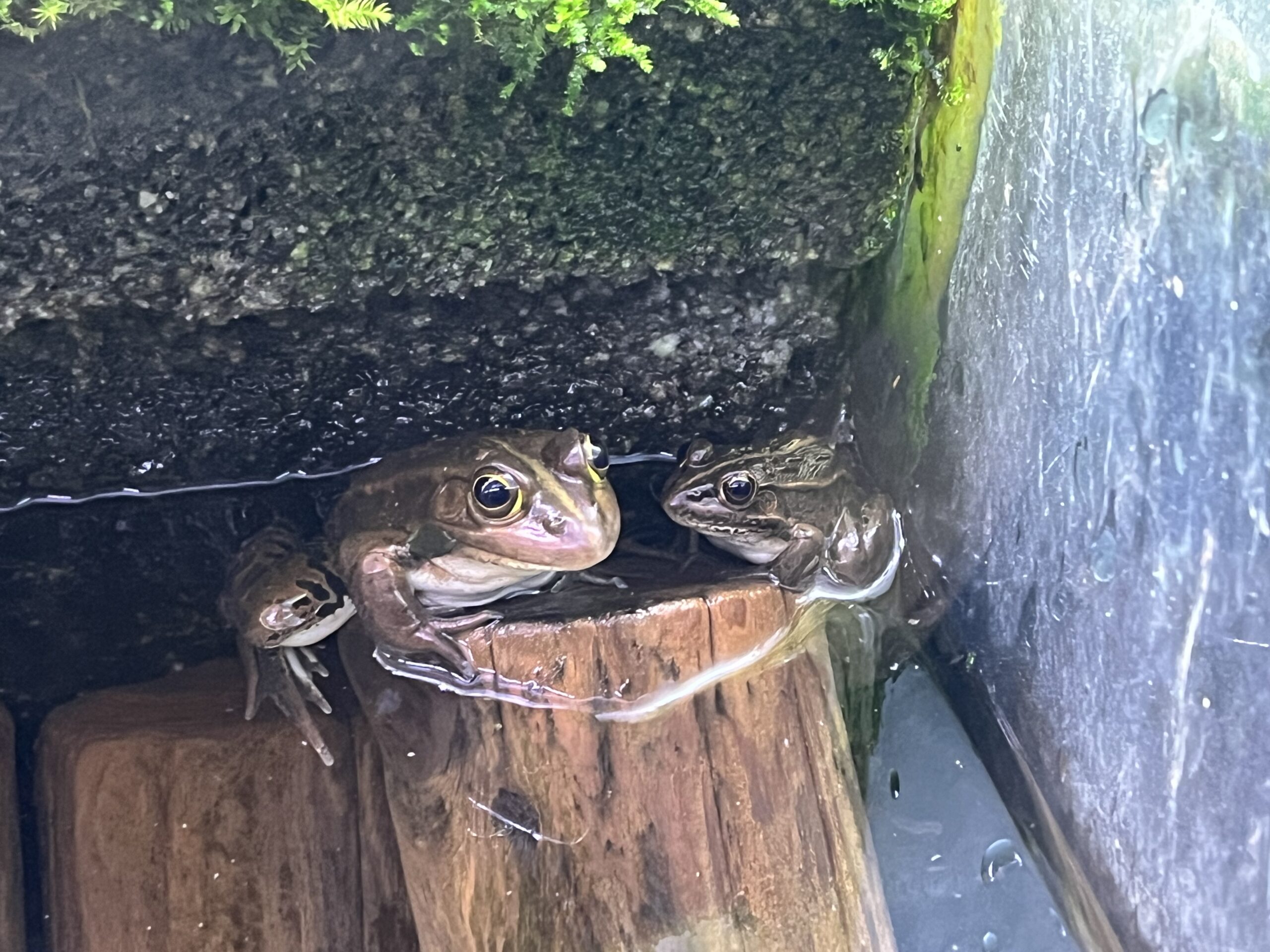 金色に輝く背中と、堂々とした姿がまるで殿様(とのさま)のようなトノサマガエル。その名前にふさわしい威厳を持つ。平野部の水田や湿地で暮らし、夜になると「グワー、グワー」と大きな声で鳴き、メスに求愛する。非常にジャンプ力が高く、後ろ足の大きな水かきを使って、一気に飛び跳ねる姿は迫力満点。その小さな体からは想像もつかない、力強い生命力が魅力的なカエルだ。