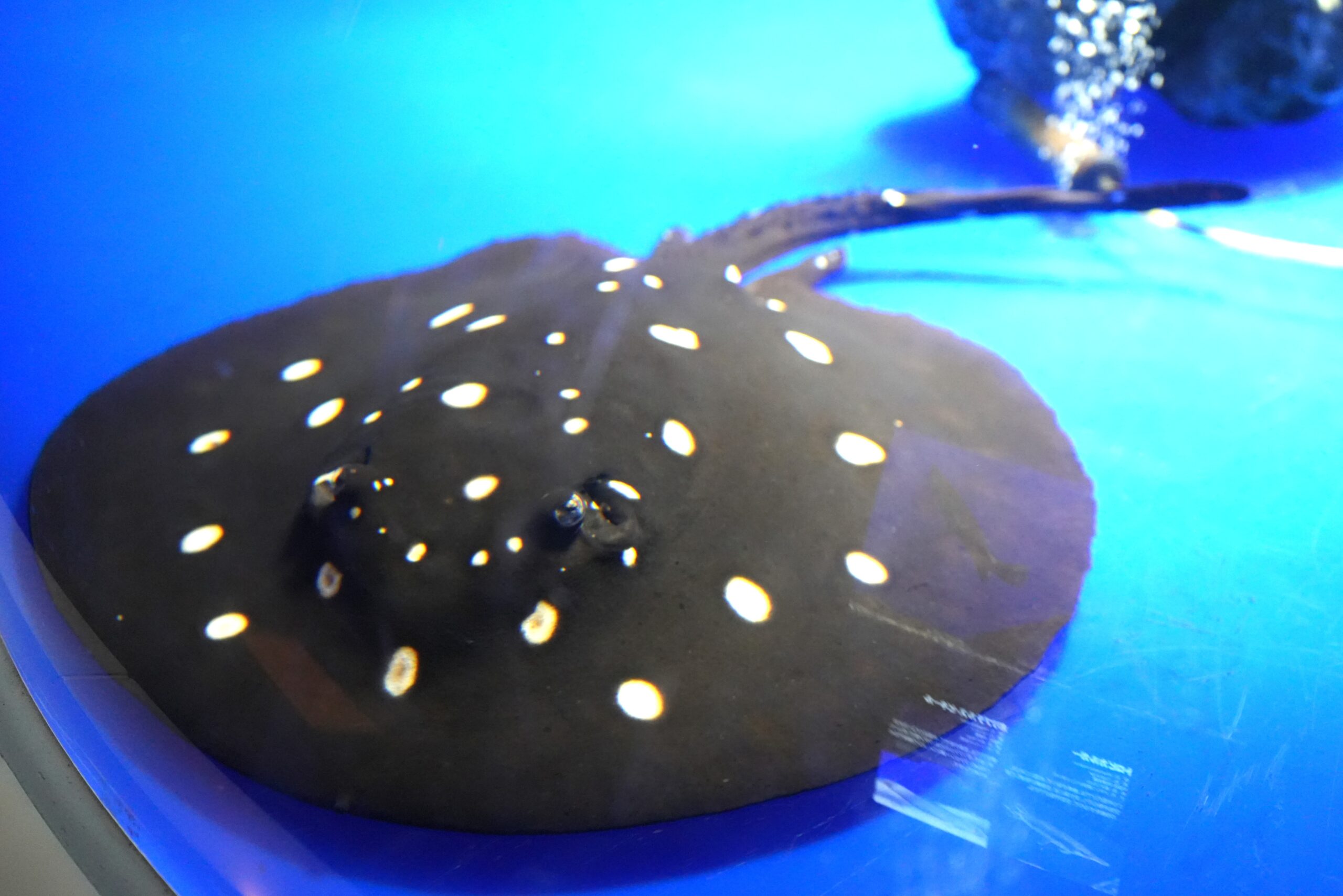 ポルカドットスティングレイは、その名前の通り、体に美しい水玉模様が広がっていて、まるで動くアートのよう。この模様は個体ごとに異なります!また、このエイは非常におとなしく、攻撃的な性格ではありませんが、身を守るために鋭い尾で自衛することがあります。おっとりした外見とは裏腹に、その背中には意外と「スパイシー」な一面が隠れているんです。
